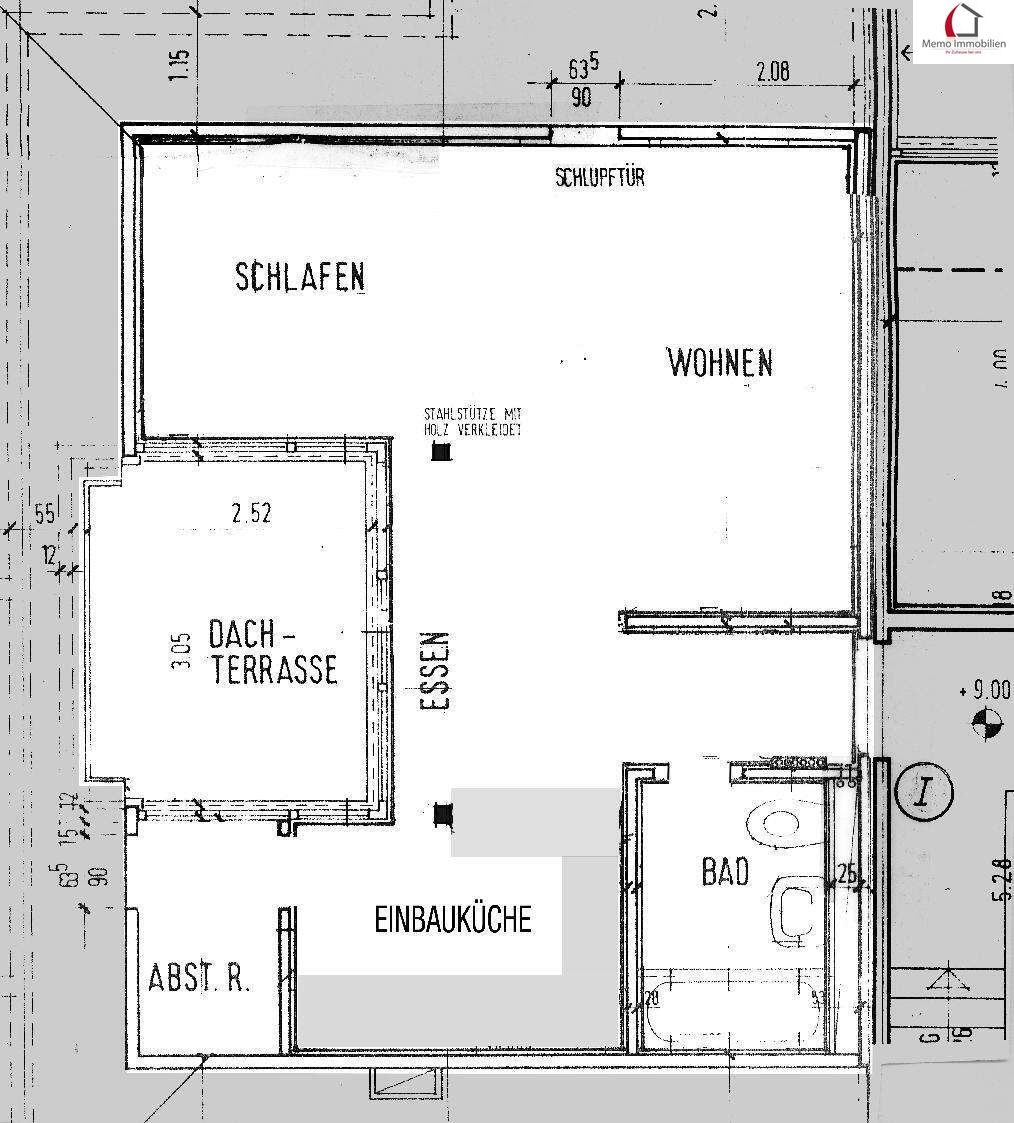 DG-Wohnung: 1,5 Zimmer ca. 35 m², offene Küche mit einer Einbauküche, ein Tageslichtbad mit Wanne, Waschbecken und WC sowie eine Dachterrasse. Die ist derzeit vermietet und erwirtschaftet 5.640,00 € Mietrendite im Jahr, zur Wohnung gehört auch noch ein Tiefgaragenstellplatz und ein Kellerraum.